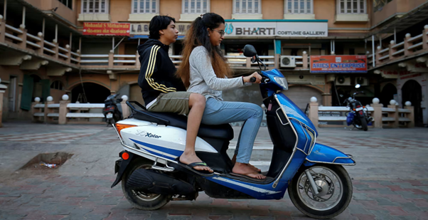 Fig 1: Riders on an electric scooter in Ahmedabad, India. Pic Credit: Amit Dave/Reuters