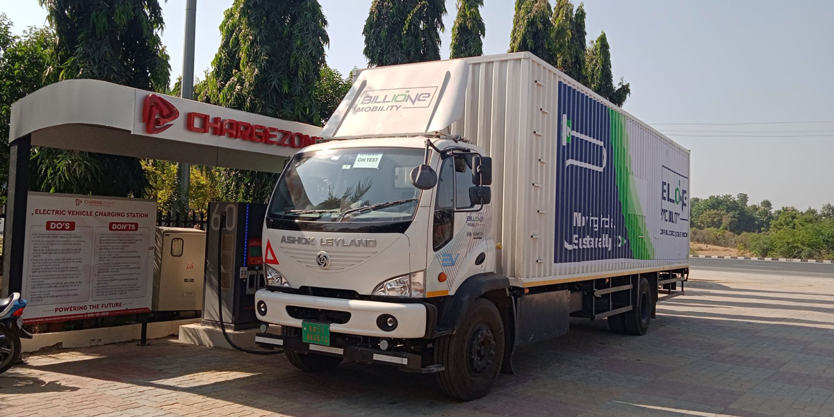 image credits : e-truck charging at a charging station powered by BILLIONe and Charge Zone